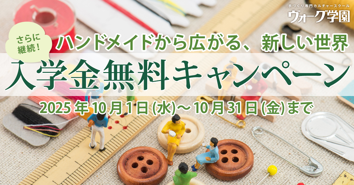 ヴォーグ学園は、ハンドメイドを通じ、楽しみ、学び、創りながら、生活をハッピーにしたい、生活に彩りを与えたいという気持ちで数多くの講座を展開しています。
