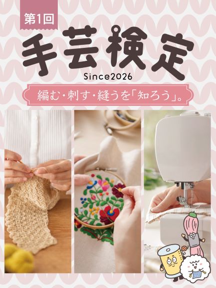 編物、刺繍、ソーイングの知識を問う「第1回手芸検定」を、2026年1月25日(日)に全国4都市のリアル会場試験およびオンライン試験にて全国一斉開催します。