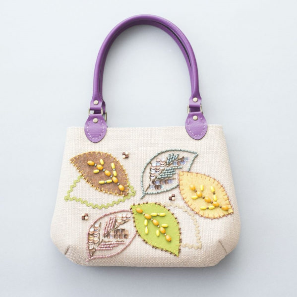 パーティーバッグだけではなく、普段のお出かけに持ちたいカジュアルなビーズ刺繍バッグを作ります。帆布などにスパングルやビーズを刺繍します。また、ビーズ刺繍だけではなく、フェルトのアップリケやコード刺繍など、ハンドワークを組み合わせたデザインによって、作品を作りながら自然にさまざまなハンドワークを習得することができます。